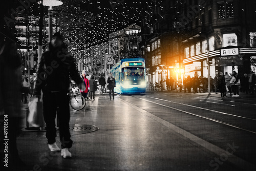 Public transport, 24hrs a day. Digitally manipulated shot of a busy city street at night.