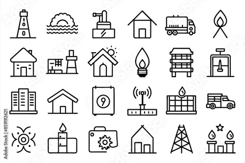 Public Utilities icon set. editable stroke outline icons set. vector illustration.