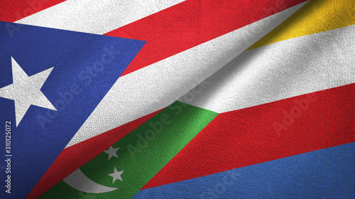 Puerto Rico and Comoros two flags textile cloth, fabric texture