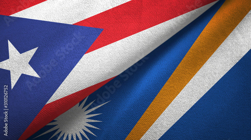 Puerto Rico and Marshall Islands two flags textile cloth, fabric texture