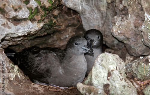 puffin du pacifique, Puffin fouquet, Ardenna pacifica, Wedge tailed Shearwater, adulte au nid, terrier, puffinus pacificus, Ile Cousin, Seychelles