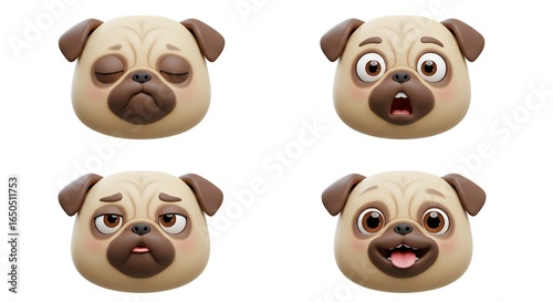 Pug dog faces various emotions graphic design