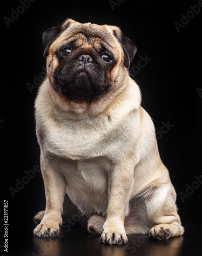 Pug dog on Isolated Black Background in studio