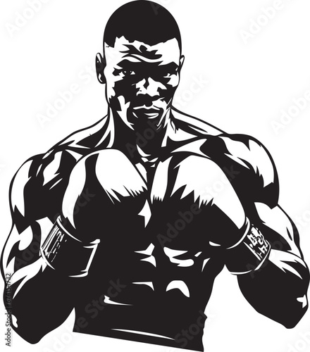 Pugilistic Prowess Boxing Man Design Emblem Black Beauty Boxing Man Logo Mastery