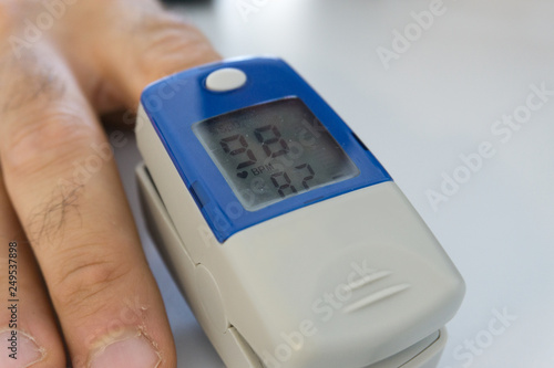 pulse oximeter with finger to measure saturation