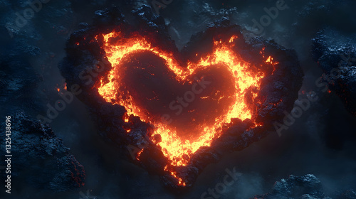Pulsing volcanic heart deep within the earth glowing with an ancient fiery essence