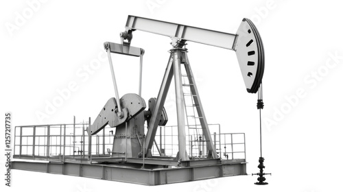 Pump jack extracting crude oil with transparent background