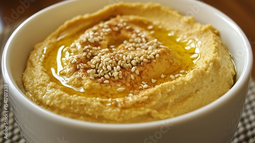 Pumpkin hummus seasoned with olive oil and sesame seeds