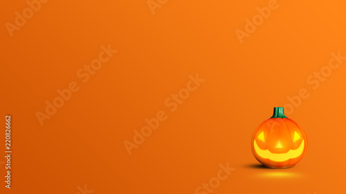 Pumpkin made from plastic on orange background. Halloween and decoration concept. Front view and copy space