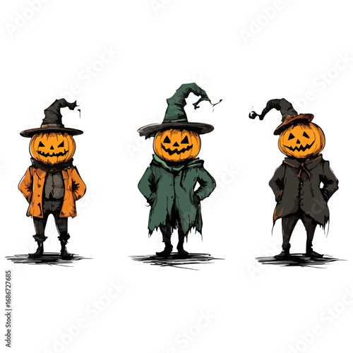 Pumpkin, pumpkin man, costume, Halloween festival, vector, transparent background, pumpkin, october, jack, celebration, scary, horror, evil, decoration, person, fun, pumpkin man sets, Various costumes
