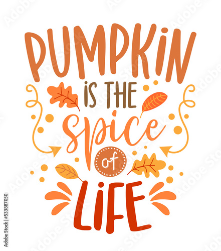 Pumpkin Spice and Everything Nice - Hand drawn saying. Autumn color poster. Good for restaurants, bar, posters, greeting cards, banners, textiles, gifts, shirts, mugs. Pumpkin spice latte life lovers.
