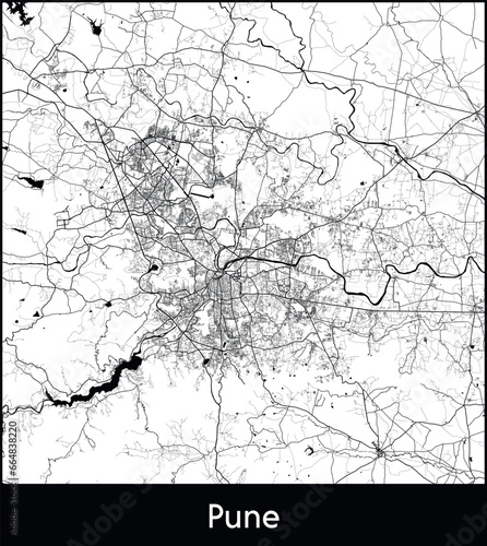 Pune Minimal City Map (India, Asia) black white vector illustration