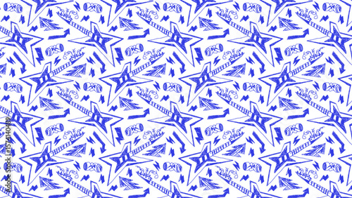 Punk scribble doodle pattern with chaotic hand-drawn elements and raw textures