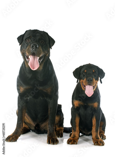 puppy and adult rottweiler