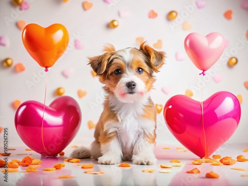 Puppy Love Balloons: A heart-meltingly adorable puppy is surrounded by heart-shaped balloons, exuding affection and spreading joy for Valentine's Day or any occasion celebrating love.