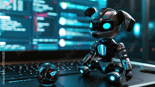Puppy robot, Futuristic canine companion, Robot dog ai pet robot animal cute puppy machine learning artificial intelligence future tech toy.
