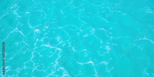 Pure blue turquoise water texture of the ocean sea with foam and waves, turquoise, vibrant, sea