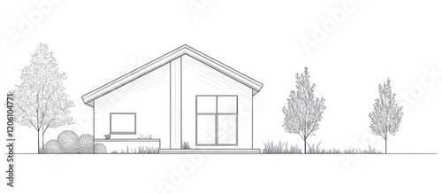 Pure white background with a minimalist line drawing, clean, elegant, and contemporary style