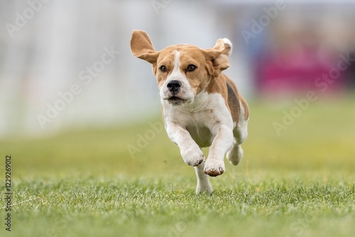 Purebred Tricolor Beagle Running Lure Course Sprint Dog Sport