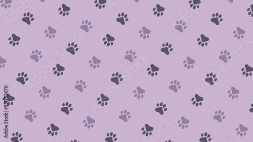 Purple seamless pattern of dog or cat paw print for t-shirts, backgrounds, patterns, websites, showcases design, greeting cards, child prints, wallpapers etc