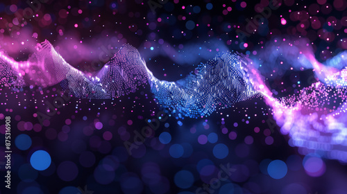 purple and blue particles as sound wave, abstract background