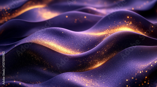 Purple and gold abstract waves with sparkling highlights.
