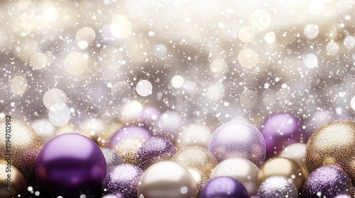 Purple and gold balloons filled with confetti shimmer against a dark backdrop, perfect for creating a celebratory and festive ambiance