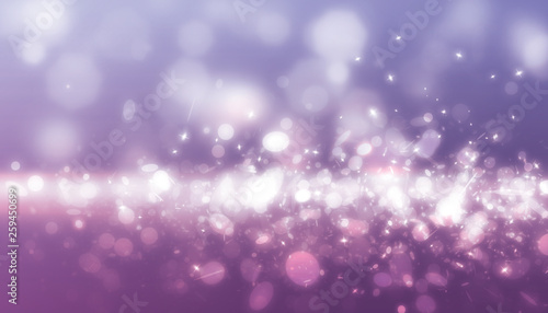 Purple and pink glitter light flowing from side scene with soft light on purple backgrpund