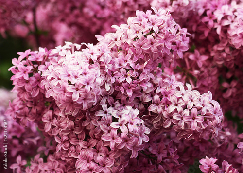 Purple and pink lilac bushes in the park.