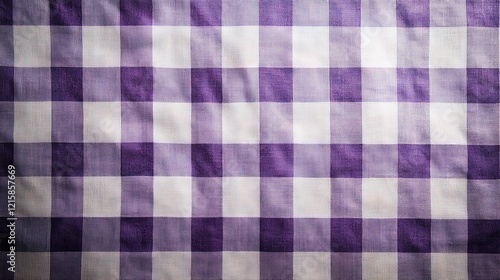 purple and white checkered tablecloth top view