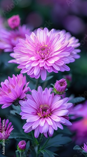 Purple Chrysanthemums Blooming in Soft Light