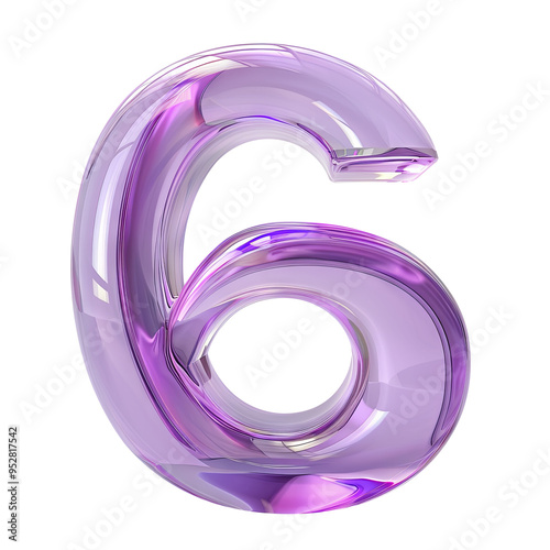 purple crystal 6 number alphabet Realistic 3D on white background. Generative AI