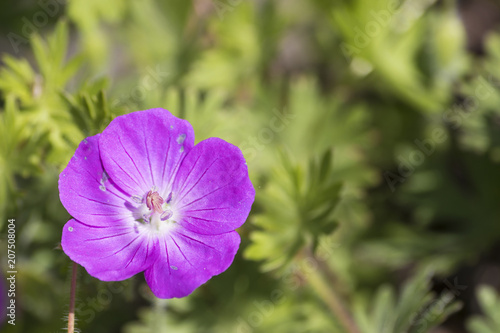Purple geranium cranesbill detailed in a green grass