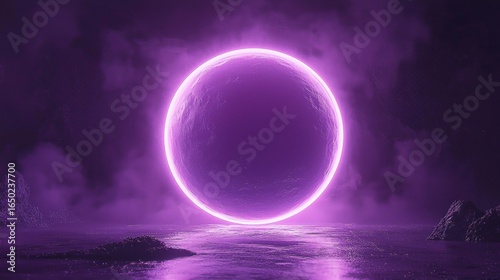 Purple glowing circle portal over water