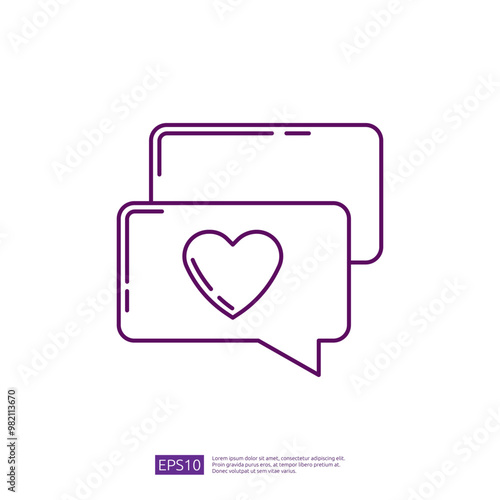 Purple Line Icon of a Chat Bubble With Heart for Social Media, Website, Mobile App