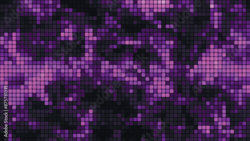 Purple mosaic background in technology concept. Abstract multicolored LED squares. Technology digital square lilac color background. Bright pixel grid background. Vector background