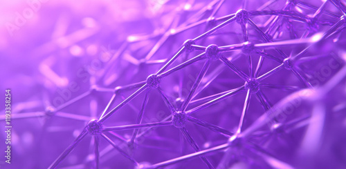 Purple neural network structure displays intricate connections between nodes, representing the framework used in machine learning and deep learning applications.