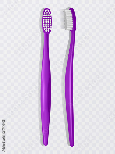 Purple plastic toothbrush, the top view, realistic toothbrush on a white background. Vector illustration