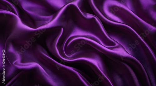 Purple satin fabric, an elegant and luxurious background. Purple silk texture. Purple cloth background. Purple silk satin fabric with waves