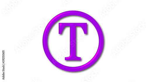Purple shiny T 3d letter logo on white background, 3d letter logo