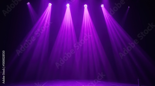 Purple stage lights casting beams in a dark setting, ready for a performance.