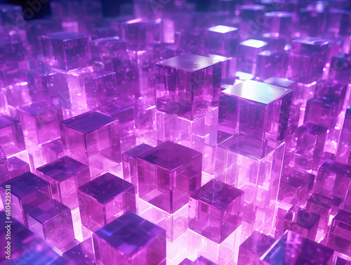 Purple translucent cubes creating a vibrant geometric landscape. Visual art concept. Generative AI