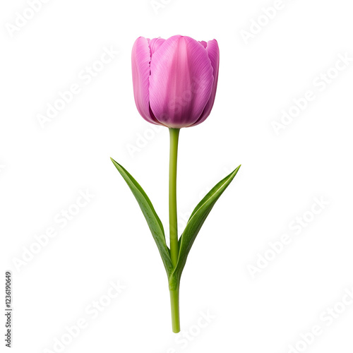 Purple tulip with a sleek green stem showcasing vibrant color and elegance during a spring afternoon