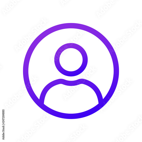 Purple user icon in the circle. Thin line.