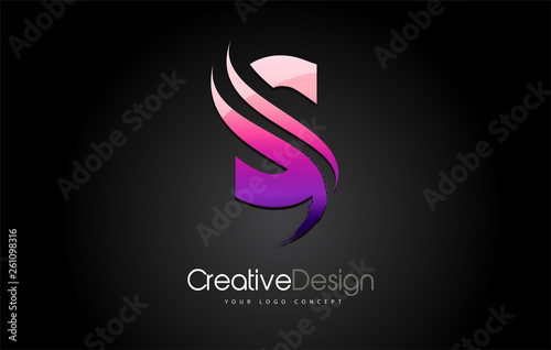 Purple Violet S Letter Design Brush Paint Stroke on Black Background