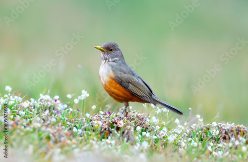 Purple-breasted Thrush (Turdus rufiventris), a bird symbol of Brazil, captured in natural light that highlights its vibrant colors. Perfect photo.Sabiá laranjeira.