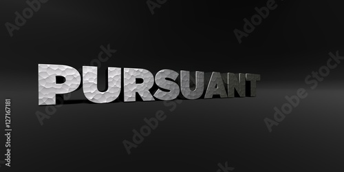 PURSUANT - hammered metal finish text on black studio - 3D rendered royalty free stock photo. This image can be used for an online website banner ad or a print postcard.