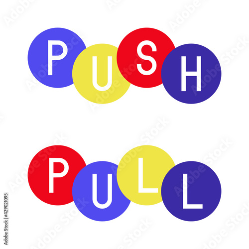 Push and pull signs, icons isolated on white background. Vector illustration.