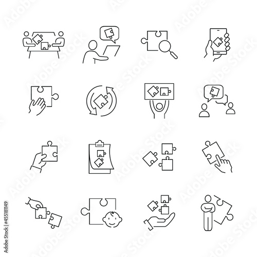 Puzzle icons set. Puzzle pack symbol vector elements for infographic web
