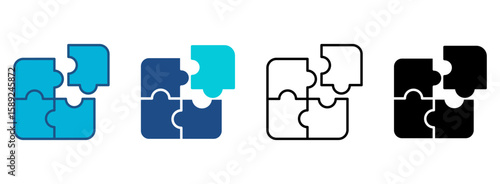 Puzzle Piece Icon Set With Multiple Styles. Vector Illustration